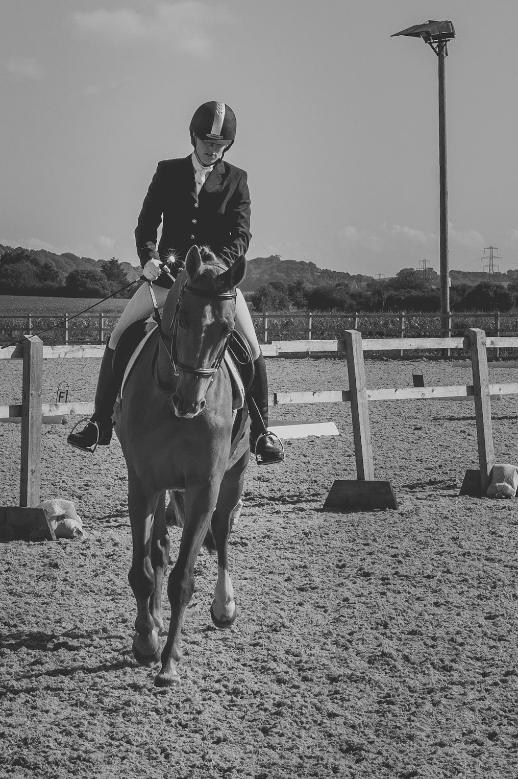 My wife's horse Gilly in the middle of his qualifying test for regionals.